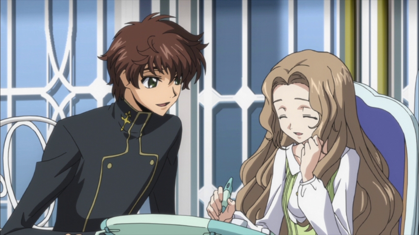 The main character Lelouch is quite the bad ass, and his character design looks it, too. He's a strategist, the commander of the Black Knights resistance. He isn't one dimensional, he cares about his sister and friends. How refreshing it is to have a main character who doesn't have hesitations about fighting or killing. The show has lots of characters, but it's easy to follow without getting lost. Still, it did feel that characters were sidelined at times and probably could have balanced its characters better.